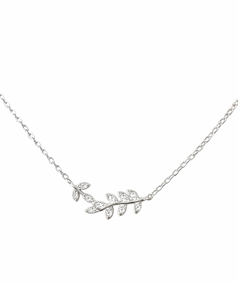 Crafted in premium 925 sterling silver, this necklace features a delicate leaf branch motif accented with diamond-inspired crystals, creating a graceful and nature-inspired design. The finely detailed leaves add a sense of movement and elegance, making the piece feel light, refined, and feminine.